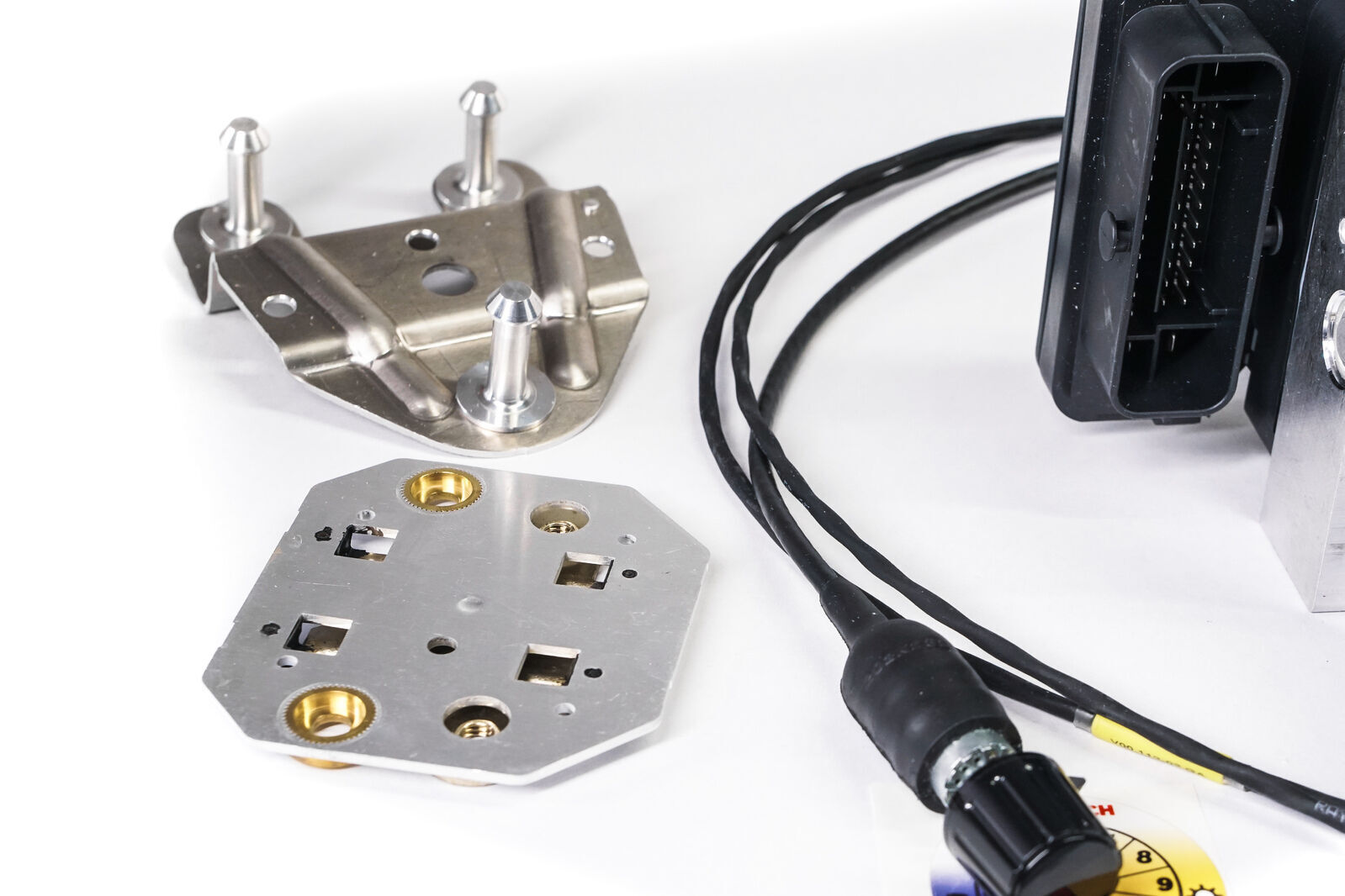 - Kit includes: ABS unit, M/C pressure sensors, Malfunction lamp, Map selection switch, Accel/Yaw rate sensor and mounting plate, Wheel speed sensors/extensions and vehicle wiring harness, M/C brake pipes, ABS unit mounting bracket, Circuit breakers with mouting plate,